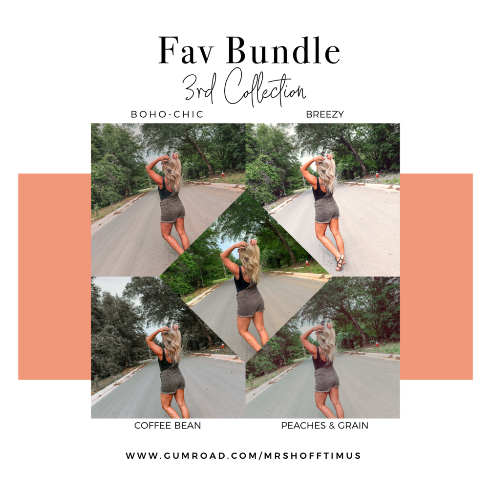 FAV BUNDLE (3rd collection) includes the presets: Boho-chic, Breezy, Coffee Bean, Peaches & Grain.